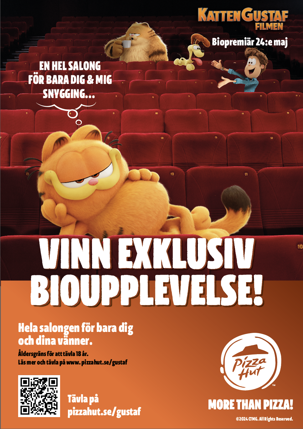 1:a pris: Exklusiv biovisning av filmen om katten Gustaf för dig och ditt sällskap (max 30 gäster), inklusive läsk och popcorn.