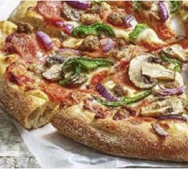 PAN PIZZA Vår klassiska originalpizza med frasiga kanter och fluffig botten. Small / Kids: 4 slice - 19 cm Medium: 6 slice - 26 cm Large: 8 slice - 33 cm